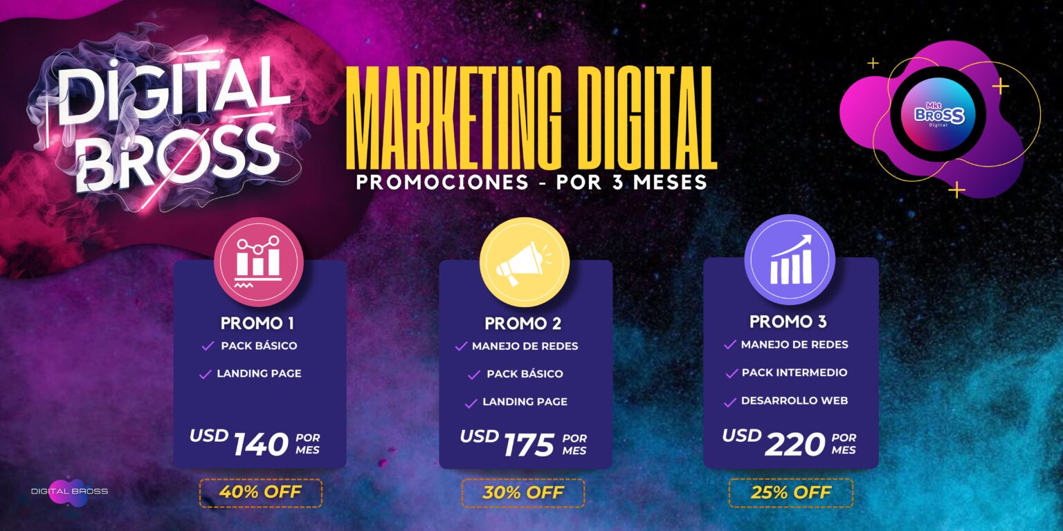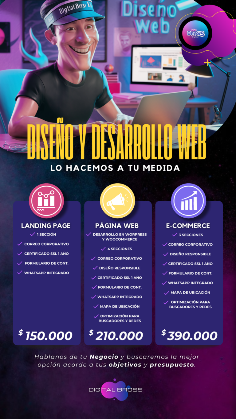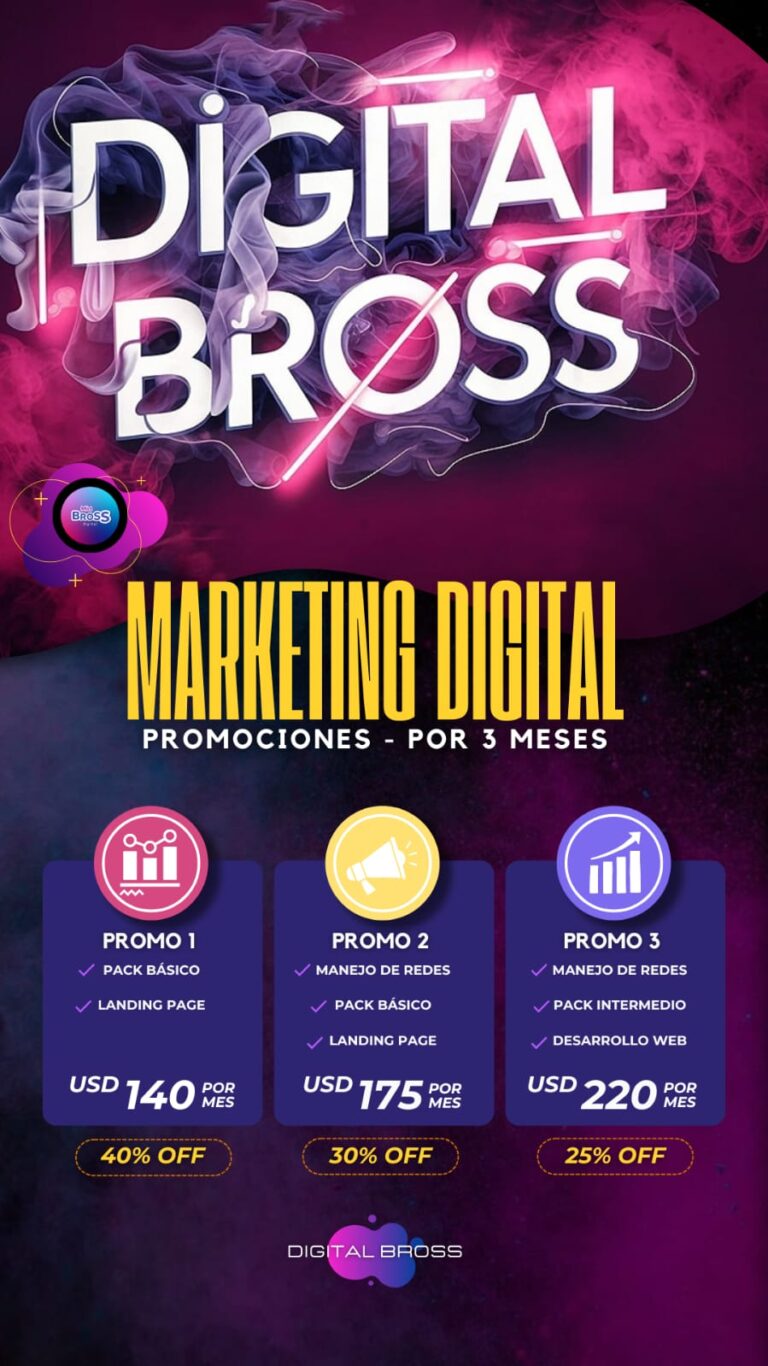 ¡Hola! Somos Digital Bross, un equipo lleno de ideas frescas y mucha pasión por el marketing digital. Nos dedicamos a ayudar a marcas a brillar y crecer en el vasto mundo digital. Nos encanta ver cómo cada proyecto toma vida y se convierte en algo grande, ayudando a nuestros clientes a llegar a más personas, generar ventas y ganar reconocimiento en redes.
